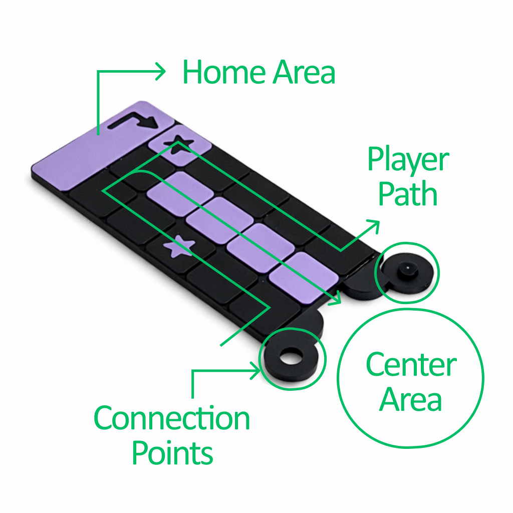 - Each player picks a color and places all 4 tokens in their Home Area.